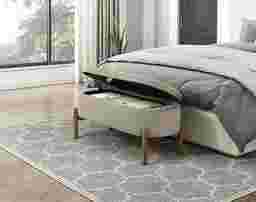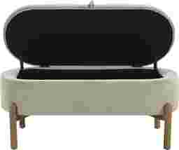 Add a touch of mid-century modern style and practical storage to your home with this Ulivia, taupe corduroy storage bench. Featuring a sturdy plywood frame, foam-cushioned seat, and soft corduroy fabric upholstery, this bench offers both comfort and style. The solid wood legs in a wire-brushed natural finish add a touch of warmth and elegance, while the interior storage compartment provides a convenient place to declutter your space. Perfect for entryways, bedrooms, or living rooms, this storage bench is a versatile and chic addition to any home. Customer assembly is required.