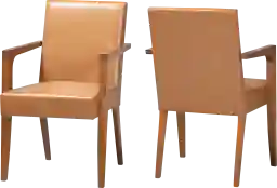 The warm walnut brown finish of the wood frame and the classic tan faux leather make these chairs incredibly versatile statement pieces. For a cohesive mid-century look, pair them with other tapered-leg furniture and earth-toned accents like olive green or burnt orange. If your living room is more contemporary, these chairs can add a touch of retro warmth to a space anchored by a neutral-colored gray or beige sofa.