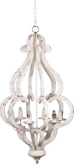 Rustic personality shines through the Ulrik Road chandelier, finished in charming weathered white. The open frame gives this piece decorative appeal without obstructing the light, perfect for ornamental candelabra bulbs. This chandelier would make a lovely focal point in any room. Professional installation by an electrician is recommended.