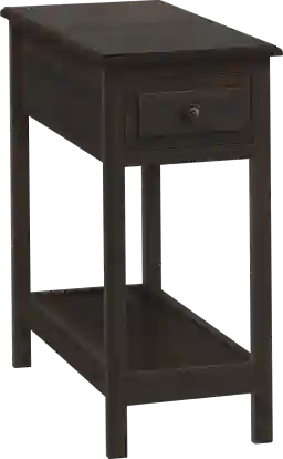 If you are looking to add a touch of style and sophistication to your bedroom or living room, then look no further than this 25-inch-high dark walnut brown veneer Umberland accent table. This durably designed and fashionable two tier side table is durably designed to place in multiple spaces. The easy-to-clean top makes it perfect for placing items such as a small lamp, books or decorative objects with a bottom shelf for added storage. The space-saving design includes a storage drawer with a classic bronze metal knob to tuck away small essentials. Whether you are looking for a narrow nightstand to add to your bedroom or an end or side table next to a chair or sofa in your living room, this versatile accent table is the perfect solution. Customer assembly is required.