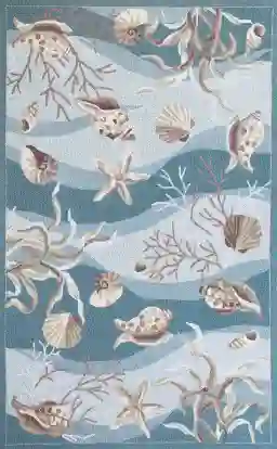 Invoke the feelings that are associated with the ocean by introducing the Under the Sea Adventures rug to your interior decor. Featuring a unique coastal pattern in soft blue and ivory colors. Hand-hooked with 100% polyester. Vacuum regularly & spot clean stains. Professional cleaning recommended periodically.