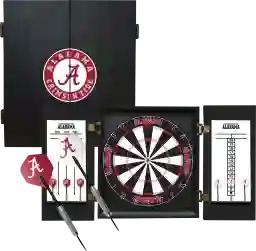 The Fan's Choice University of Alabama dartboard set features your favorite team logo and includes a premium 18-inch tournament sized, self-healing bristle dartboard. Self-healing bristle dartboards are some of the longest lasting boards on the market, since the holes close up after each dart is removed. This hanging dartboard cabinet will look great in your fan cave or any room that your family and friends gather. It's easy to assemble and the cabinet comes preassembled and ready to hang on the wall. Secure the dartboard and you are ready to have hours of enjoyment.