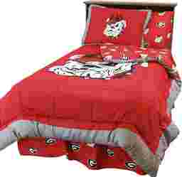 No young football fan's room is complete without the perfect bedding to inspire dreams of winning the big game. All items are 100% cotton sateen, 200 thread count for a wonderfully soft feel. Comforter has your favorite university's logo printed large on front with an all over logo pattern printed on the back giving you a reversible comforter with two unique looks. This set includes a full comforter and two pillow shams. Machine Washable