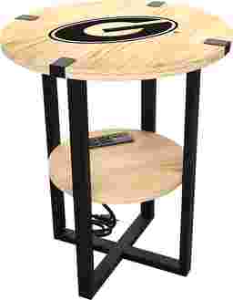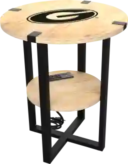 The Georgia laser etched round side table features a modern design that seamlessly blends with various decorative styles. It offers a convenient functionality for charging up to four devices at one time. The 2-Tier shelf also provides ample space to store your TV remote and other small items. Whether you are a Bulldogs fan or simply appreciate well-crafted furniture, this side table is a versatile addition to any room. Customer assembly is required.