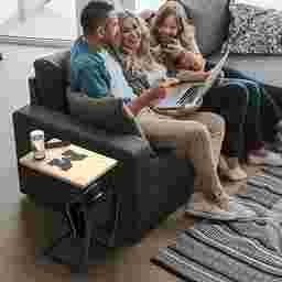 Introducing the ultimate sidekick for your living space, the modern C-Shaped side table featuring the legendary University of Michigan laser-etched logo. This sleek design not only adds a touch of team spirit but also fits seamlessly under your couch or chair, providing a convenient surface for your laptop, tablet, or game-day snacks. Whether you are tackling a work project, enjoying a cozy movie night, or cheering on your Wolverines, this versatile table is the perfect companion for every occasion. Customer assembly is required.