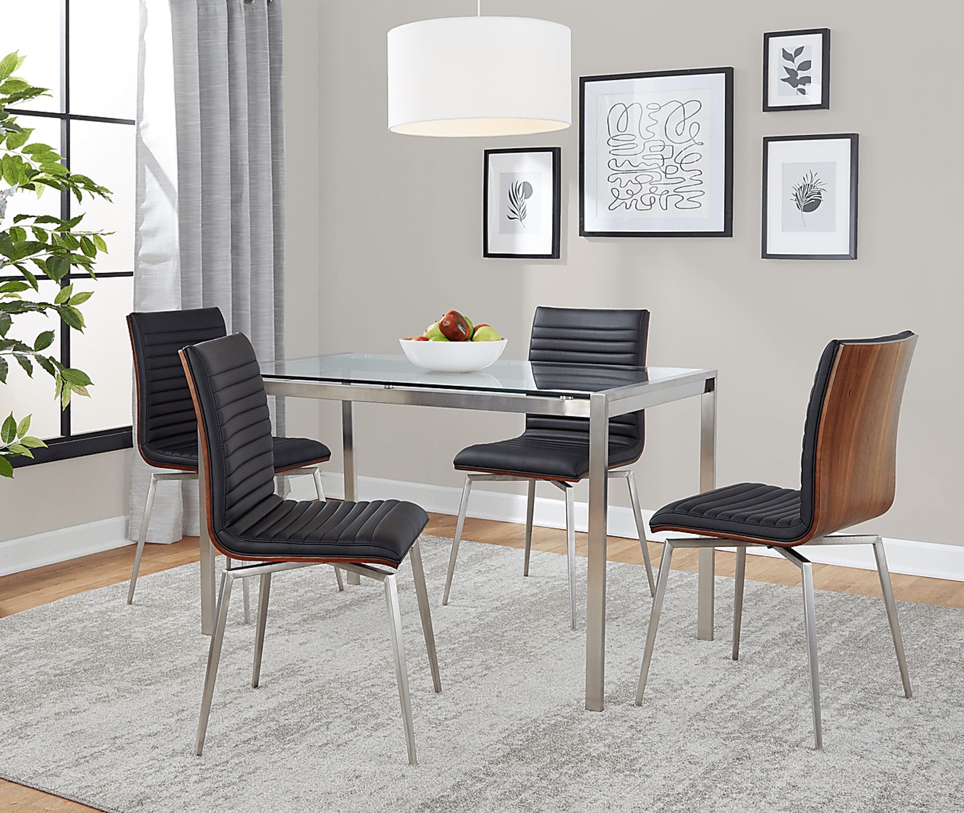 With a simple and sleek table, and an accent of comfortable chairs, the Upsall II swivel dining set will be a great addition to a modern kitchen or break room. With a contemporary styling, this is a beautifully curated set to make life stylish and easy. With a seating capacity of four, this dining set would be perfect in any dining room, kitchen, or breakroom. Customer assembly is required.