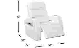 The Uptown Loft offers a modern twist on the traditional recliner. This version is sleekly designed with a contemporary open arm, power capability and twin cupholders. Channeled detailing and soft, breathable fabric in a classic white color create a striking look and feel. The padover chaise footrest offers full leg support and can be raised and lowered with the simple touch of a button. 85% Polyester, 15% Polyurethane