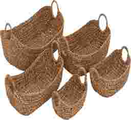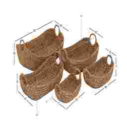 Bring the calming beauty of the sea into your home with Vailti, where natural textures meet effortless style. This set of five oval seagrass baskets combines durable craftsmanship with chic, hand-braided patterns that elevate any room. Each basket features convenient inner ring handles, making organization both functional and beautiful. Loved by home decor enthusiasts for its earthy charm and sophisticated design, Vailti transforms everyday storage into a stylish statement. The textured brown finish adds warmth and serenity, complementing any interior effortlessly. Elevate your space with Vailti and let your home reflect your unique sense of beauty and thoughtful design. Each brown seagrass storage basket measures 12L x 7W x 6H, 16L x 9W x 7H, 19L x 10W x 8H, 21L x 13W x 9H, 23L x 16W x 10H inches, and collectively weighs 6.23 lbs. Customer assembly is required.