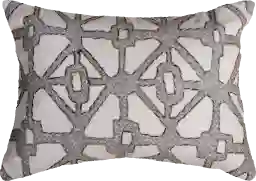Measuring 14 inches wide by 20 inches high, this rectangular pillow is specifically designed as a layering piece. Its unique scale allows it to sit perfectly in front of standard 20x20 square pillows, providing both visual depth and additional lumbar support. The dramatic geometric pattern makes it an excellent choice for adding a sophisticated, transitional touch to a deep-seating outdoor sectional.