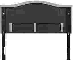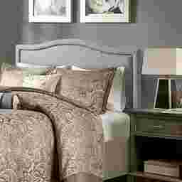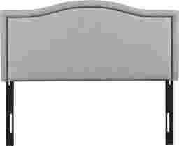 Elevate your bed with the refined look of the Valechase queen upholstered panel headboard. This queen headboard is upholstered in a dusty blue fabric with silver nail heads around the edge to create a chic transitional design. The adjustable black metal legs make it easy to find the correct height to fit your bed frame, while the plywood frame construction provides added stability and durability. Showcasing elegant and clean lines, this upholstered headboard offers a stylish versatility to complement any bedroom decor. Customer assembly is required.