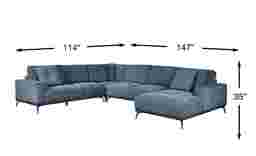 A tufted elegance that gives comfort its own lavish style and panache, the Valencia sectional is perfect for those with discerning taste and a cosmopolitan touch. Contemporary in style, this luxurious set is upholstered in blue woven fabric with attached tufted seat cushions for a look of black-tie sophistication. Tufted, padded track arms add a sense of stoic handsomeness to the proceedings while canted, tapered metal legs deliver an eye-catching final touch. Upholstery: 100% Polyester.