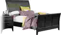 The Valencia sleigh bed combines sleek, contemporary styling with quality hardwood frame construction. Fabulous padded insets on the headboard match the cocoa finish of the wood frame and coordinating footboard. Beautifully designed to impact the bedroom with luxury, the Valencia sleigh bed is a wonderful bed and a significant value.* Valencia Dark Sleigh 3 Pc King Bed*Bed shown is queen size and packaged with wood rails. Mattress andnightstand not included.