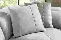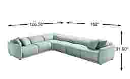 Understated drama with a touch of soothing elegance marks the Valerio collection, creating a stylish space made for serene lounging with its cloud-like silhouette and tailored details. Fully upholstered in hydra green top grain leather, this sectional creates a cozy, modern look with its low-profile silhouette and pillowy curves. Rounded mailbox arms showcase a decorative ribbon accent for a crafted touch of charm and contrast. Dual power reclining invites personalized relaxation with adjustable headrests and footrests while a control panel with USB ports is nestled discreetly between seat cushions. Matching toss pillows with a contrasting accent thread offers a final layer of texture and visual interest. Upholstery: 100% Nubuck. To clean, use a soft bristled brush and/or a vacuum cleaner to remove surface dust and debris. For stains, dip a clean cotton cloth in a small amount of water and gently press into the stained area. Do not rub the stain.
