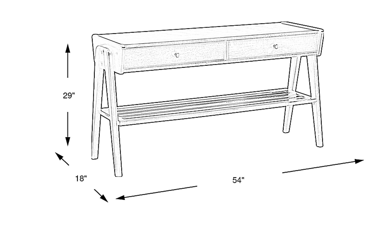The Valloria sofa table makes a wonderful addition to your traditional living area. Crafted of wood solids and cherry veneers, this table boasts a rich brown finish for that classic look. Its lower shelf showcases a slat-style construction, while angled legs add visual appeal. Two drawers with steel knobs offer concealed storage, perfect for remotes, coasters and more.