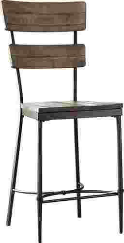 A prime addition to your industrial or transitional decor. The Valyermo counter height non-swivel stool is right at home with exposed brick and rafters. The dual-tone contrasting grain embodies today's trends; curves and rounded edges add softness to this pragmatic design. Forged in heavy gauge tubular steel with brown finish and juxtaposed with distressed walnut finished wood components to create stunning style with lasting durability. Slightly curved stool backs and perfectly placed foot rests offer ultimate comfort for diners. Customer assembly is required.