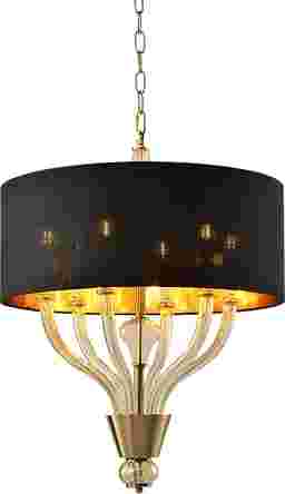 The Vanderbilt Avenue is a modern 6 light chandelier with golden accents. The lights are hidden behind the black shade which has a metallic coating to help reflect ambient light upward and downward. This shade helps to soften and diffuse the light and create a warm ambiance. Add this chandelier to your entryway or dining room for a elegantly dynamic look. Professional installation by an electrician is recommended.