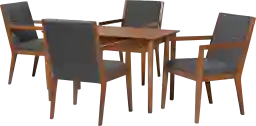 To preserve the dark gray finish, our care experts recommend dusting the wood surfaces regularly with a soft, dry cloth. For the upholstered chairs, polyester fabric is relatively easy to maintain; for minor spills, we recommend spot-cleaning with a soft cloth and a mixture of mild soap and water. Always avoid harsh chemical cleaners, as they can damage the wood finish and fabric integrity over time.