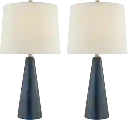 The Varn Lane lamp, set of 2 offers a refreshing look for modern or coastal style decorating. This lamp features a hand-crafted water-flow design in a blue finish that offers a natural elegant look. The design is topped by a white fabric tapered drum shade. An ideal look for a contemporary or coastal style room. Partial assembly may be required.