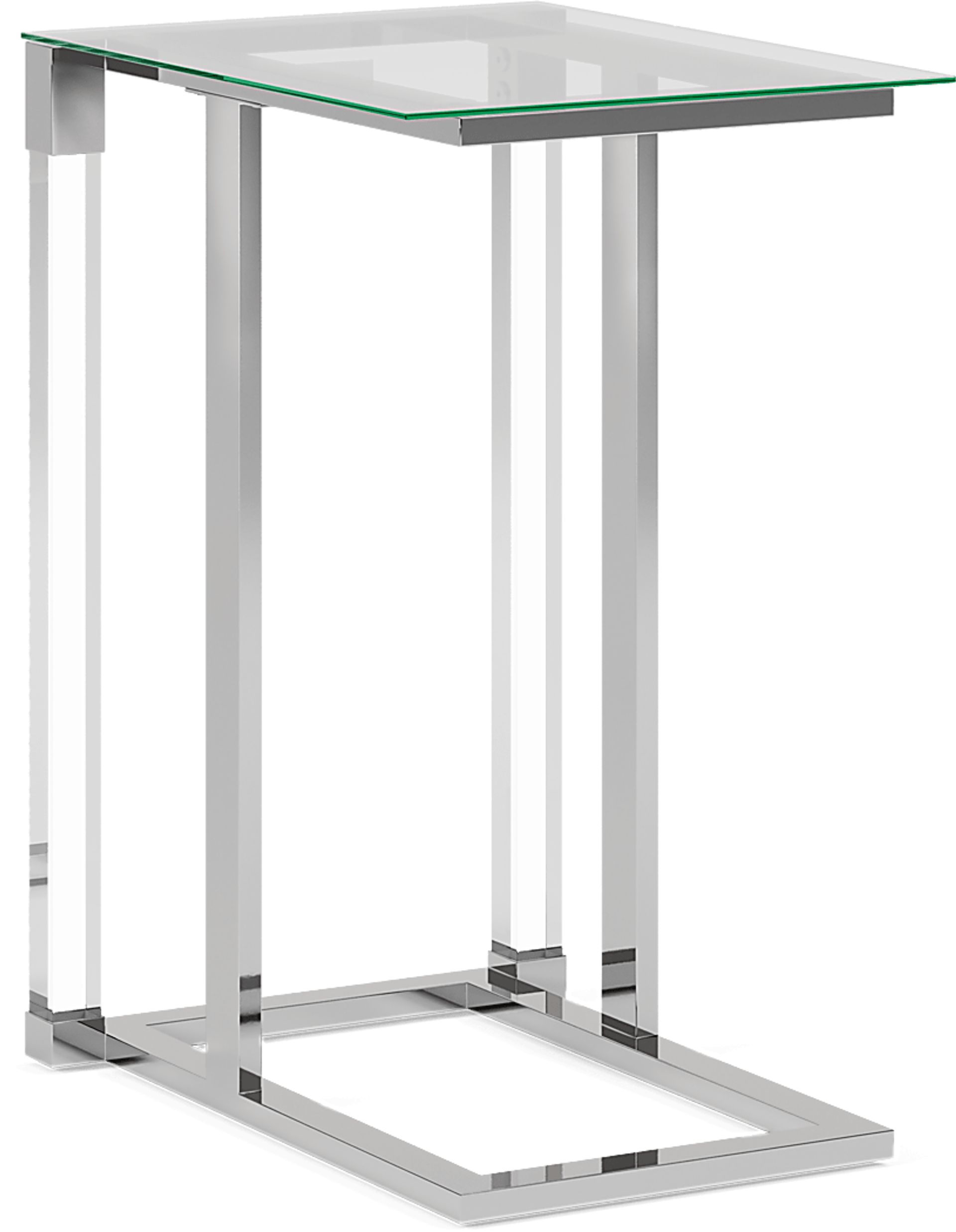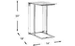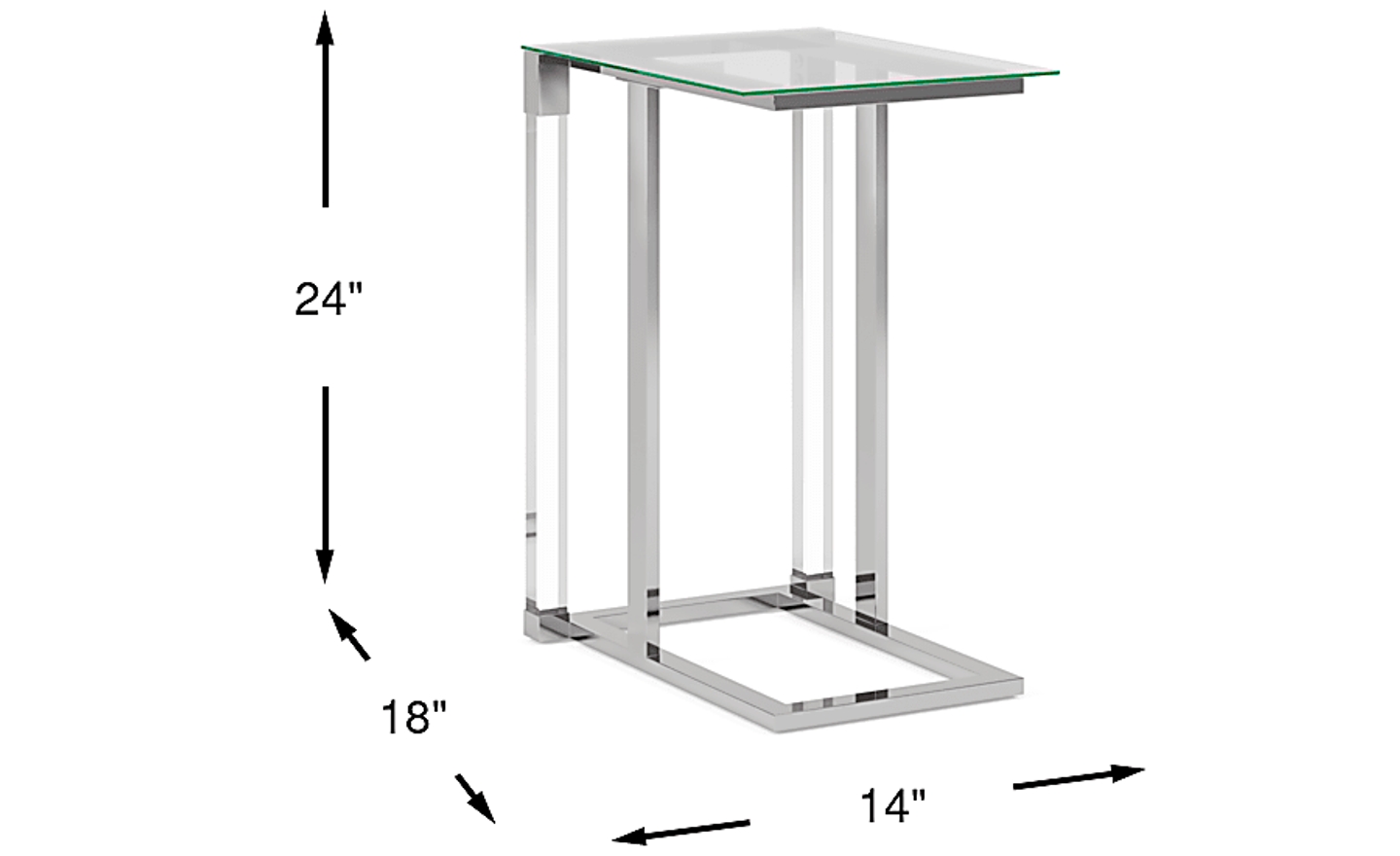 Thoroughly modern, the Varna chairside table provides the perfect partner for a contemporary sofa, loveseat or chair. The table boasts clear acrylic legs with silver finished metal accents. With a tempered glass top, this piece is perfect for keeping what your want within arms reach without skimping on style.