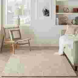 The versatile ivory and beige tones of this rug, combined with its casual geometric pattern, allow it to serve as a sophisticated foundation for many decor styles. Because the design uses a "space-dye" effect for added depth and dimension, it can bridge the gap between solid-colored furniture and more eclectic accents. It works particularly well in casual or modern settings to add visual interest without competing with bold wall colors or textured upholstery.