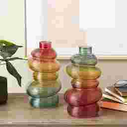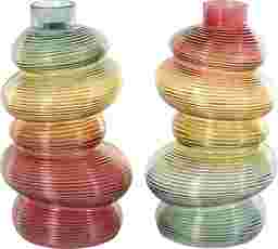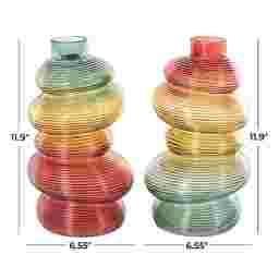 Designed with a free-spirited charm where vibrant hues, eye-catching patterns, and whimsical accents transform your space and showcase your personality. The Velane multicolored vase set is crafted from high-quality, durable glass. The geometric vase set features green, yellow, and red colors with a stunning tinted finish. This glass set of 2 vases showcases intricate geometric patterns and color blocks.