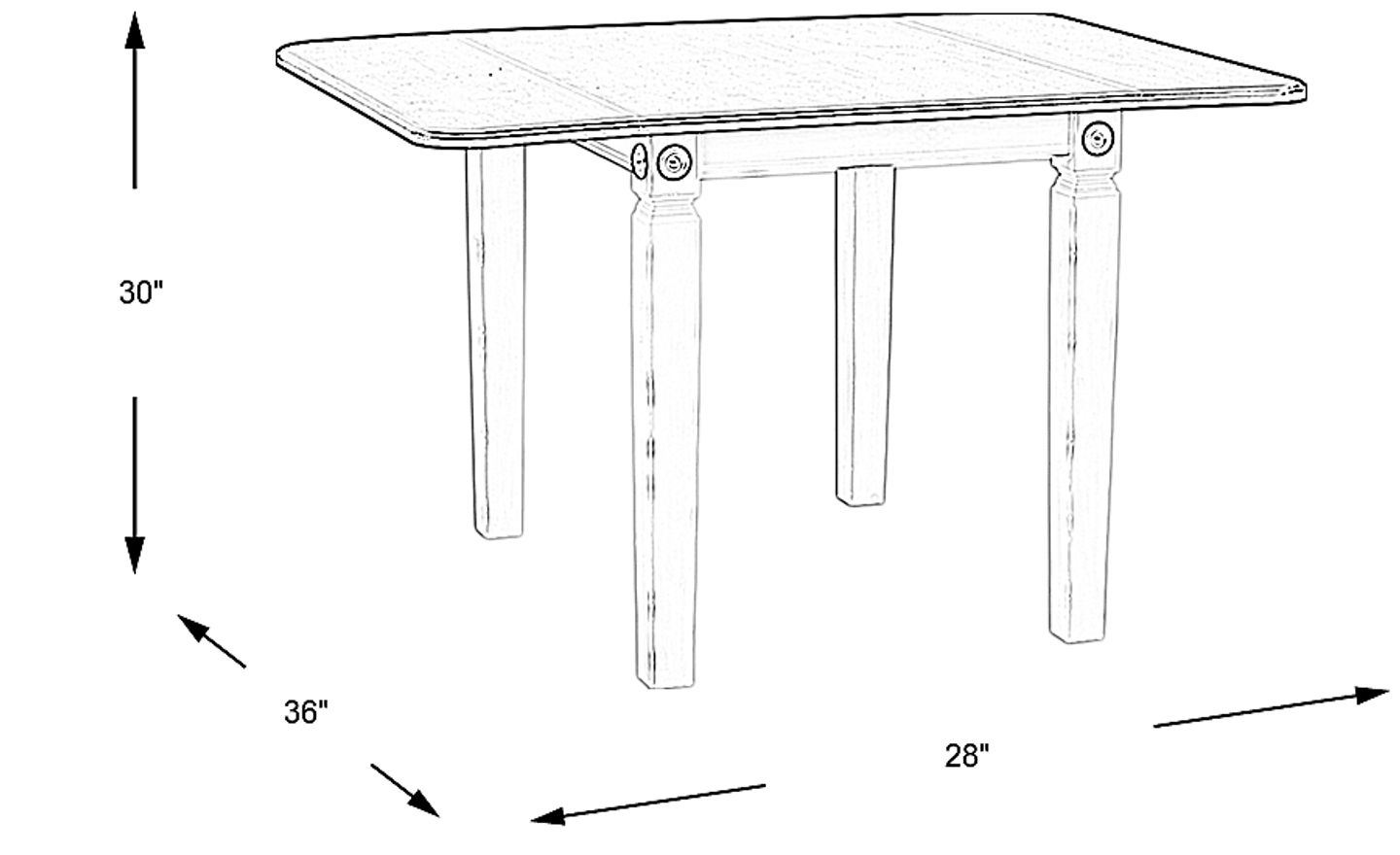 Manufacturer's Instructionstable: 28"-50"l x 36"w x 30"h, two leaves: 11"l