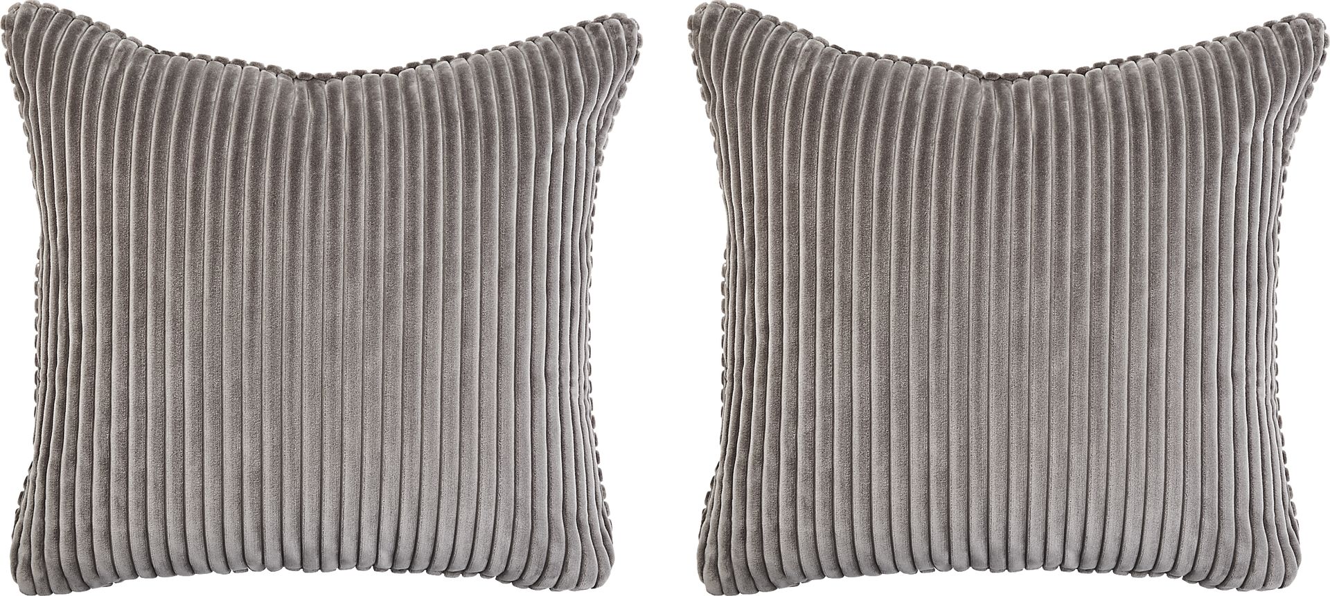 When it's time to lay on the luxury, the Velvet Cord pillow pair makes it as easy as unwrapping a rich, decadent square of chocolate. These smoky gray pillows feature handsome reeded fabric with an irresistible velvet-soft texture for the ultimate style statement. Upholstery: 100% Polyester.