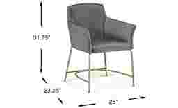 Create a posh look when you add the Venetian Court arm chair to your dining room. This luxurious chair is upholstered in soft fabric rendered in a neutral gray color. Powder coated metal legs offer support with a beautiful gold finish.