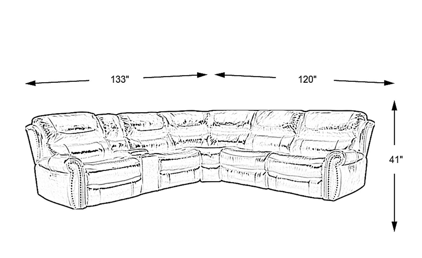 Designed for indulgent comfort, the Venezio sectional characterizes luxury. Upholstered in sumptuous top grain leather where the body touches, this sectional boasts a rich brown color. Roll arms and nailhead accents lend a classic traditional look. Great for movie nights, the console features lift-top storage and two cupholders. Lean back and relax with three reclining chaise-style footrests. Top grain leather where the body touches with polyurethane sides and backs.