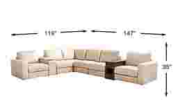 Yes, this sectional is engineered to help keep your living area clutter-free. It features two distinct consoles: a non-media console with a dark brown woodgrain finish that offers significant hidden storage for remotes or blankets, and a media console that includes lift-top storage. These functional additions allow you to keep everyday essentials within reach while maintaining the clean, contemporary aesthetic of your home.