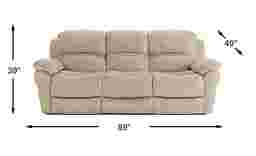 The Vercelli sofa offers premium seating made for head-to-toe comfort. Upholstered in supple top grain leather wherever the body touches, the neutral stone colored sofa is luxurious and soft. Crafted for convenience too, the sofa features a USB port and a power reclining button on each side of the sofa. Simply touch the button to raise and lower the padover chaise style footrest to find the perfect position. (The middle seat remains stationary.) Contoured bucket seats and pillow top arms add cozy elements to the contemporary design. 24" extension when footrest is fully reclined. Allow 6" for wall spacing. Top grain leather where the body touches and vinyl sides and backs.