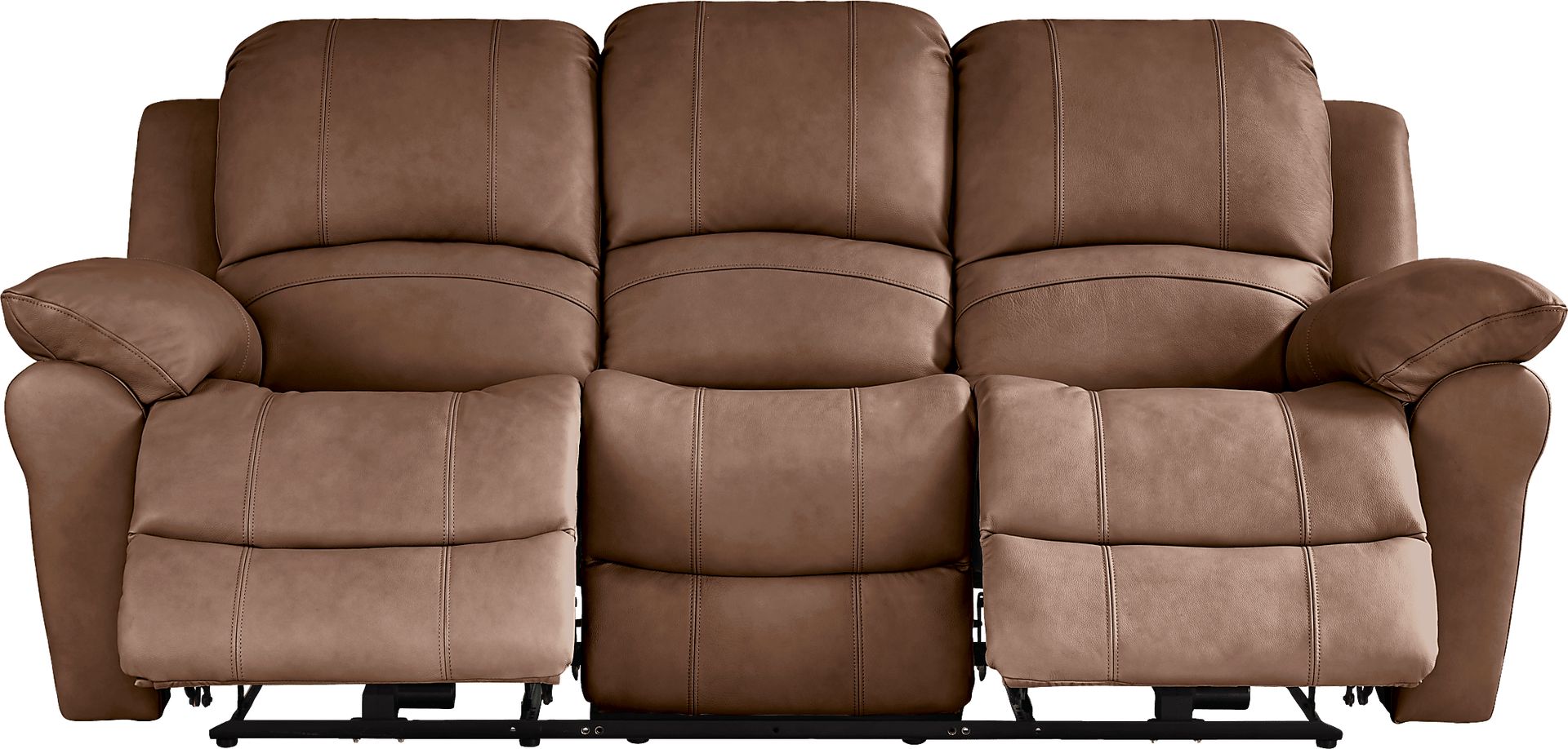 The Vercelli Way sofa offers premium seating made for head-to-toe comfort. Upholstered in supple top grain leather wherever the body touches, the neutral brown colored sofa is luxurious and soft. Crafted for convenience too, the sofa features a USB port and a power reclining button on each side of the sofa. Simply touch the button to raise and lower the padover chaise style footrest to find the perfect position. (The middle seat remains stationary.) Contoured bucket seats and pillow top arms add cozy elements to the contemporary design. 24" extension when footrest is fully reclined. Allow 6" for wall spacing. Upholstery: Top grain leather where the body touches and polyurethane fabric sides and backs. Leather is a durable, low maintenance product, however, general regular maintenance is necessary. To keep your leather clean, vacuum it regularly, removing any dust, and clean it with water and a mild non-detergent soap.