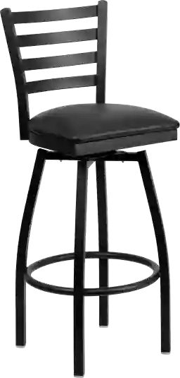 The metal barstool is a popular choice for furnishing restaurants, pool halls, lounges, bars, and other high traffic establishments. The Verdon black swivel barstool is easy to clean, which is an important aspect when it comes to a business. This ladder back barstool was designed to withstand the daily rigors in the hospitality industry, but will also provide a chic look to your home. The thick foam padded seat will keep users comfortable. The 360 degree swivel seat allows you to swing around effortlessly. The frame is stabilized using two welded support bars which includes a footrest. The floor glides help protect your floors and ensure smooth gliding. The simple and lightweight design of this barstool will not disappoint whether used for residential or commercial grade use. Assembly required.
