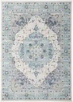 This is a unique and intentional characteristic of polypropylene construction. Because of the way the synthetic fibers reflect light, the intricate shades of blue, cream, and gold may appear more or less vibrant depending on your viewing angle or the specific lighting in your room. This light-play adds a sense of "authentic elegance" and depth to the traditional Oriental pattern.