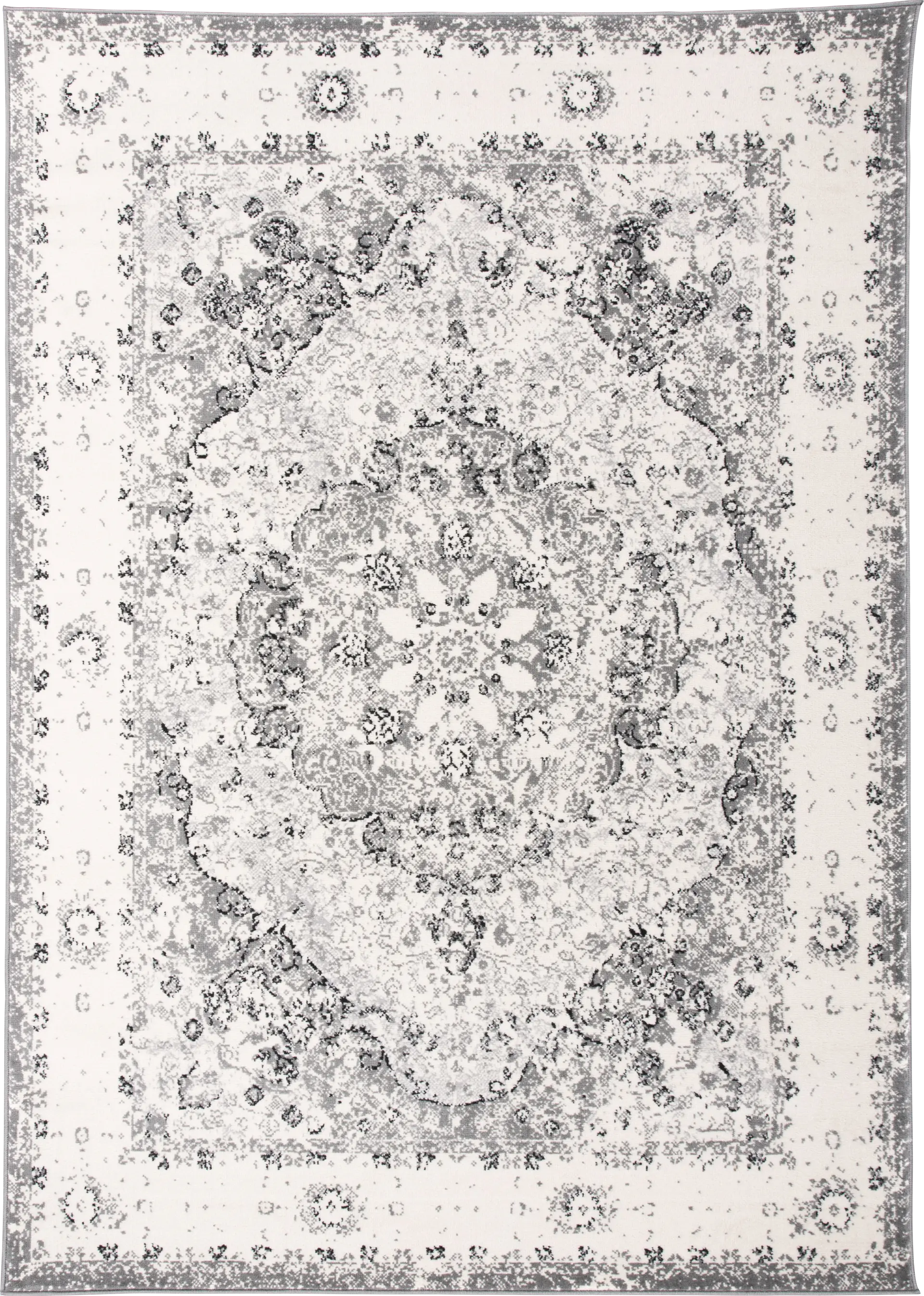 Yes, a traditional Oriental design is an excellent choice for families. The intricate patterns and multi-toned gray and ivory shades are highly effective at disguising minor stains, pet hair, and everyday wear that might be more visible on a solid-colored rug. Additionally, the low-pile synthetic construction is resistant to snagging from claws.