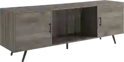Take your living room to the next level with this stylish 70-inch Verlie TV stand. Made with metal tapered legs, sleek metal handles, and a center glass shelf for a mid century modern appearance. This high-grade MDF entertainment center creates additional storage space in your home for media, electronics, accessories, books, or decor. Use as a TV stand in your living room, a storage cabinet in your bedroom, or a buffet in your kitchen or dining room. Including two side cabinets for closed storage space and center open shelving. Can support up to a 75-inch TV. Customer assembly is required.
