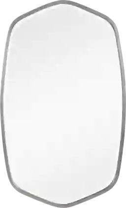 This hand forged Vernadean iron mirror frame features a unique shape with elegant curves, finished in a versatile silver leaf. Mirror has a generous 1 1/4 bevel. Customer assembly is required.