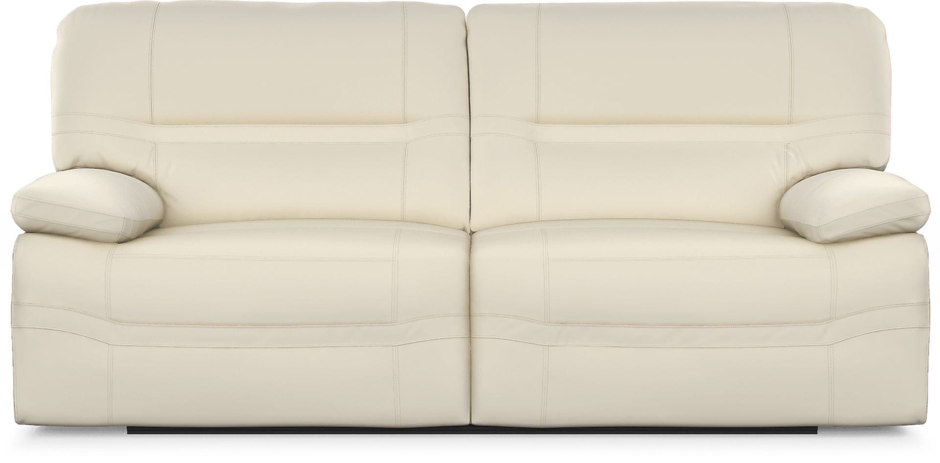 Simplistic in style, the richly tailored Vernazza Lane reclining sofa offers ultimate sophistication for your living room. Upholstered in beige top grain leather where the body touches, this non-power reclining sofa features a sumptuously padded frame with buoyant pillow arms alongside supple, deep seating. Padded chaise footrests extend with the simple pull of a handle, adding an extra level of comfort to your seating experience. Top grain leather where the body touches and vinyl sides & backs.