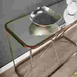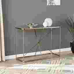 Introducing an exquisite entryway pairing of glamorous and midcentury modern style. A centered look for your living room sofa, geometric lines meet in the middle of this champagne Verret console table. Rounded edges soften the starburst frame's design,creating an elegant fit for your open concept living space. Adorn with accent or everyday items on the mirrored top of this entryway table, inviting function and design into your hall. Customer assembly is required. Customer assembly is required.