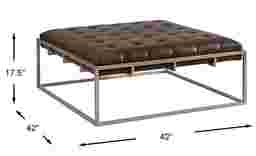 The cool chic of Madison Avenue meets classic lines and minimalist design in the Vezelay cocktail table's classy signature look. Highlighted by brown leather upholstery, this transitional piece features glamorous button tufting framed by a striking silver base. Perfect as an extra seat, cocktail table or footrest.