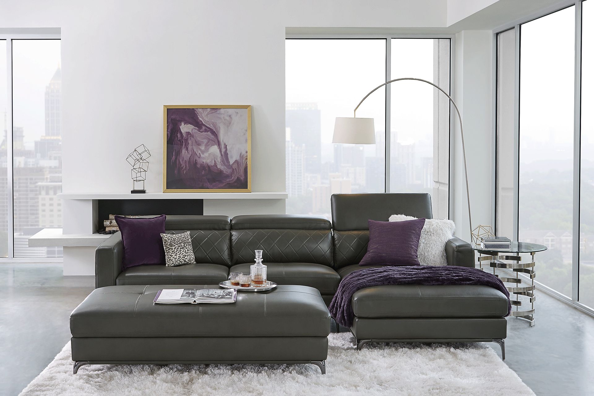Modern elegance with a contemporary twist, the Via Sorrento sectional offers indulgent comfort with a side of quality. Upholstered in soft granite colored fabric, this sectional is far from ordinary thanks to special touches such as quilted back cushions, ratchet style headrests, contrasting stitching and sleek chrome finished legs. Seating up to three adults, this luxurious sectional takes center stage in any living space. Upholstery: 85% Polyester, 15% Polyurethane