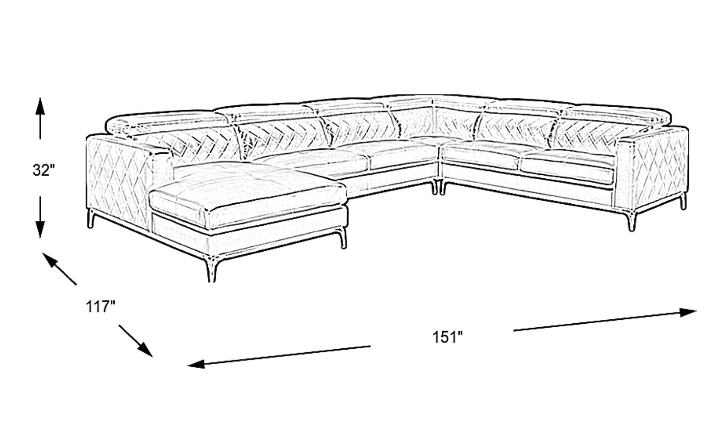 151"w"w x 117"d"d x 32"h"h