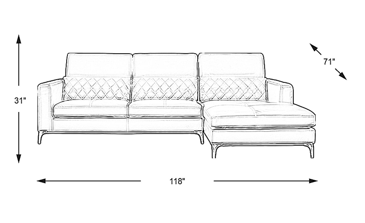 Modern elegance with a contemporary twist, the Via Sorrento sectional offers indulgent comfort with a side of quality. Upholstered in platinum high performance fabric, this sectional is far from ordinary thanks to special touches such as quilted back cushions, ratchet style headrests, contrasting stitching and sleek chrome finished legs. Seating up to three adults, this luxurious sectional takes center stage in any living space. Upholstery: 85% Polyester, 15% Polyurethane