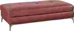 Far from your ordinary ottoman, the chic Via Sorrento storage ottoman is a versatile and stylish addition to your living space. Boasting an elegant contemporary design, this practical piece is upholstered in red high performance fabric and embellished with contrasting stitching, soft tufting detail and sleek chrome finished legs. And thanks to its ample size, this storage ottoman not only offers extra seating for two, but also provides plenty of storage space for blankets and other belongings. Upholstery: 85% Polyester, 15% Polyurethane