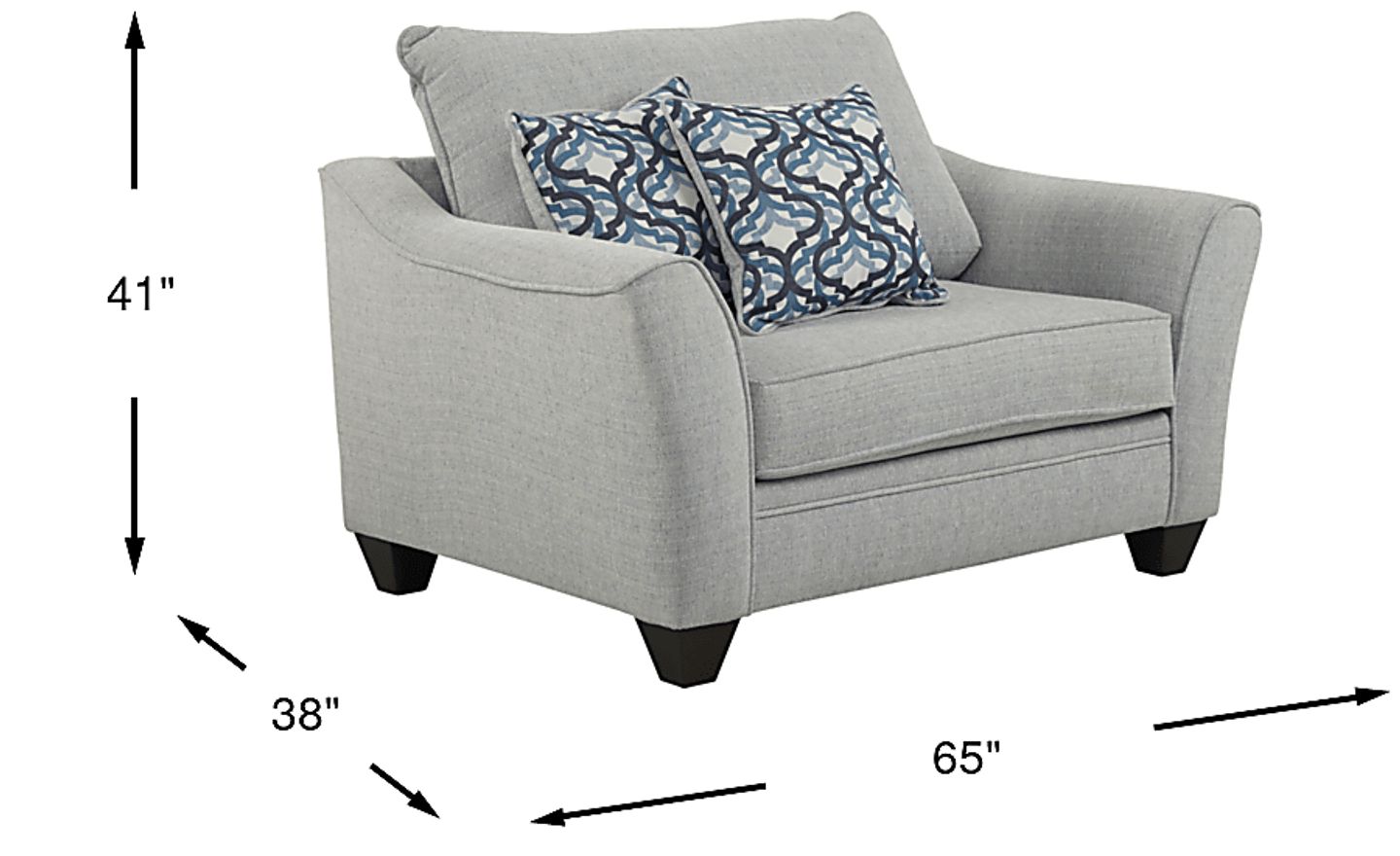 Big on space and style, the Victoria Park chair offers oversized comfort with a contemporary look. Upholstered in soft woven chenille fabric in a chic shade of dove gray, this chair is supremely plush with plenty of room to curl up or stretch out. High flared arms, sleek welted seams and two contemporary patterned jacquard accent pillows contribute to the stylish look. 100% Polyester.