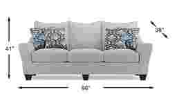 Add contemporary style and everyday comfort to your living space with the stylish Victoria Park sofa. Upholstered in soft woven chenille fabric in a chic shade of dove gray, this versatile sofa's neutral base is the perfect palette to allow accents to pop. Four stylish jacquard patterned accent pillows are included. Welted seams allow this sofa's silhouette, featuring unique high flared arms, to take center stage. 100% Polyester.