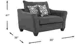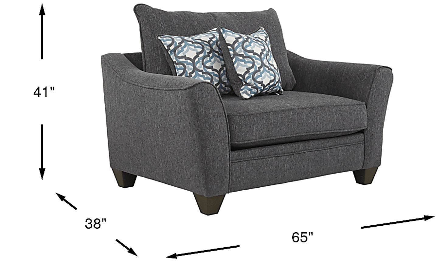 Big on space and style, the Victoria Park chair offers oversized comfort with a contemporary look. Upholstered in soft woven chenille fabric in a chic shade of gunmetal gray, this chair is supremely plush with plenty of room to curl up or stretch out. High flared arms, sleek welted seams and two contemporary patterned jacquard accent pillows contribute to the stylish look. 100% Polyester.