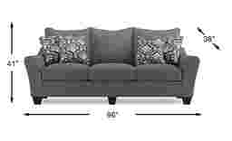 Add contemporary style and everyday comfort to your living space with the stylish Victoria Park sofa. Upholstered in soft woven chenille fabric in a chic shade of gunmetal gray, this versatile sofa's neutral base is the perfect palette to allow accents to pop. Four stylish jacquard patterned accent pillows are included. Welted seams allow this sofa's silhouette, featuring unique high flared arms, to take center stage. Plus, a fold-out queen Sealy Royale mattress offers added versatility; easily transforming any space into a guest room. 100% Polyester.