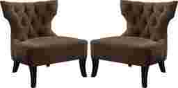 Double your decorative impact with this set of 2 Victory Place accent chairs. Both designer style pieces boast a gracefully shaped button tufted back, rich chocolate colored upholstery and a tight seat embellished with nailhead accents. Flared legs provide sturdy support. Victory Place Set of 2 Chocolate Chairs100% Polyester