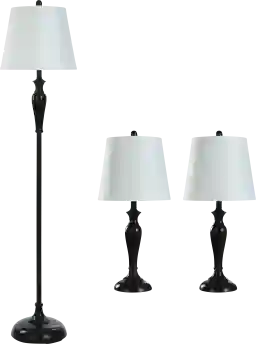 This 3-piece set is an excellent solution for urban apartments where space is at a premium and electrical outlets may be limited. By providing a floor lamp (61 inches high) and two matching table lamps in a single set, you can fully light a room without the need for additional overhead fixtures. The 12-inch diameter of the floor lamp base is specifically designed to fit into narrow corners or beside sofas, maximizing your floor space while providing essential ambient light.
